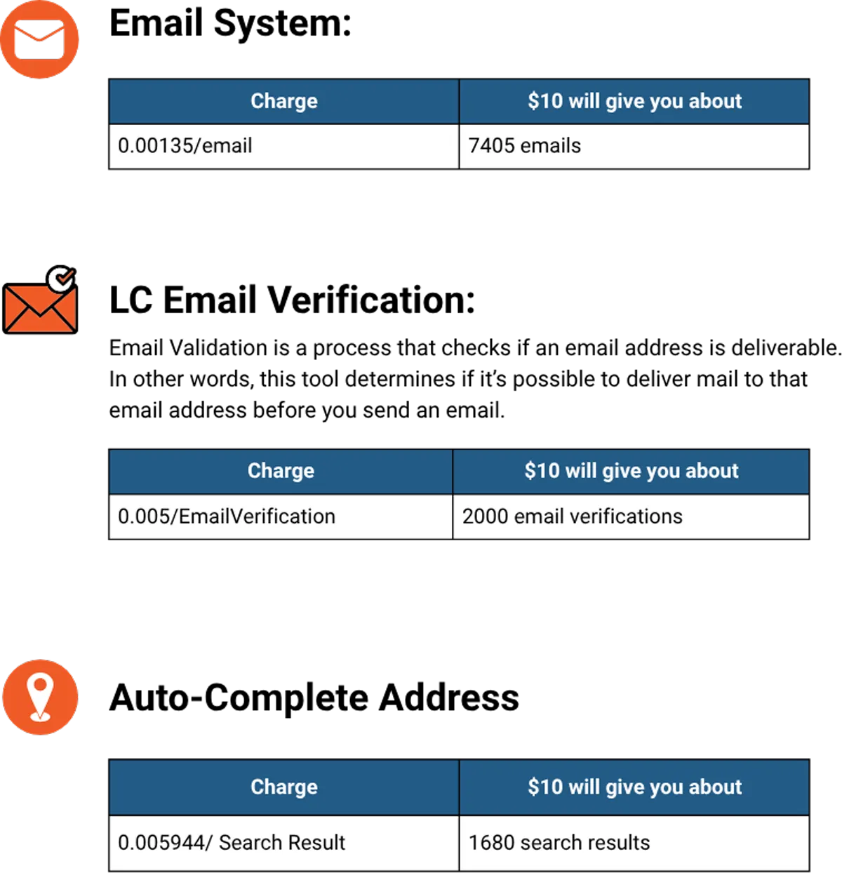 To simplify billing, a digital wallet will be established with a $50 balance via your credit card. This wallet is set to automatically recharge with $50 whenever the balance drops below $10. This ensures uninterrupted service while giving you full control over your spending.